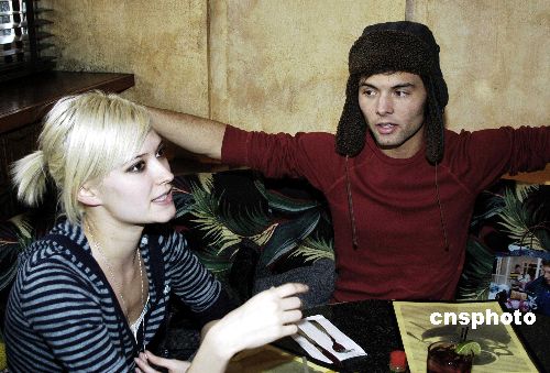 美國哥倫比亞電視臺(tái)制作的真人秀節(jié)目《幸存者:中國》本季冠亞軍托德和科特妮當(dāng)?shù)貢r(shí)間十二月十九日在紐約一家咖啡屋接受媒體采訪,大談他們?cè)谥袊谋荣惤?jīng)歷?铺啬葙惽笆沁@家咖啡館的女服務(wù)生。二十多歲的兩人稱《孫子兵法》的策略給他們很多啟發(fā),最終兩人以弱制強(qiáng),以智取勝。托德獲得一百萬美元的獎(jiǎng)金。圖為托德和科特妮(左)大談獲勝經(jīng)驗(yàn)。中新社發(fā) 鄧悅 攝