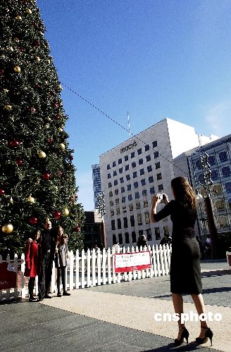 當(dāng)?shù)貢r(shí)間十二月二十五日,圣誕節(jié)的舊金山天氣晴朗。圖為一家美國(guó)人和樹(shù)立在舊金山聯(lián)合廣場(chǎng)上的巨大圣誕樹(shù)合影。中新社發(fā) 陳鋼 攝