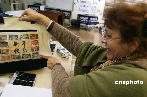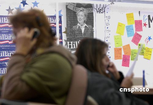 二零零七年的最后一個(gè)周末,美國,設(shè)于舊廠房中的希拉里舊金山競選總部的義工們加班加點(diǎn),給愛荷華州的選民打電話,號召民主黨的選民們?yōu)橄@锿镀。中新社發(fā) 陳鋼 攝