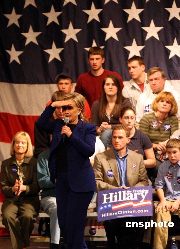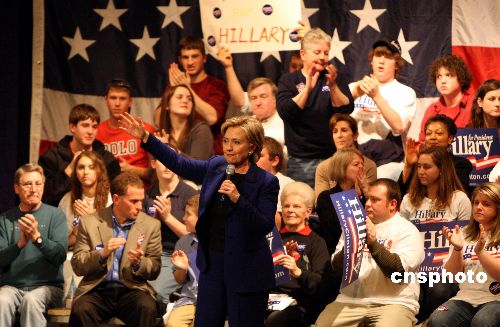 1月7日,美國民主黨總統(tǒng)競選人希拉里在新罕布什爾州的沙倫市進(jìn)行該州初選前最后的競選活動。希拉里此前在艾奧瓦州初選落敗,目前在新州民調(diào)亦處于落后,競選形勢不容樂觀。中新社發(fā) 李靜 攝