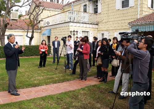 1月8日,中國駐洛杉磯總領(lǐng)事館舉行新春聯(lián)誼會,總領(lǐng)事張?jiān)、副總領(lǐng)事黃曉健、許朝友率眾領(lǐng)事集體亮相,與洛杉磯、鳳凰城、圣地亞哥的華文報(bào)紙、電視、電臺的40多位記者、編輯話家常,共同為新年祈福。中新社發(fā) 盧威 攝