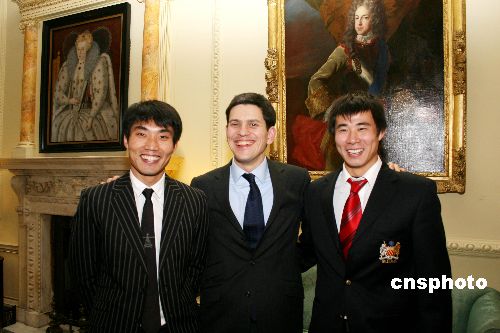 當(dāng)?shù)貢r(shí)間1月14日下午,即將訪華的英國(guó)首相布朗在唐寧街十號(hào)會(huì)見(jiàn)旅英華人華僑、中資機(jī)構(gòu)負(fù)責(zé)人、留學(xué)生等華人杰出代表。中國(guó)足球明星鄭智和董方卓作為受邀代表一同出席。中新社發(fā) 李鵬 攝