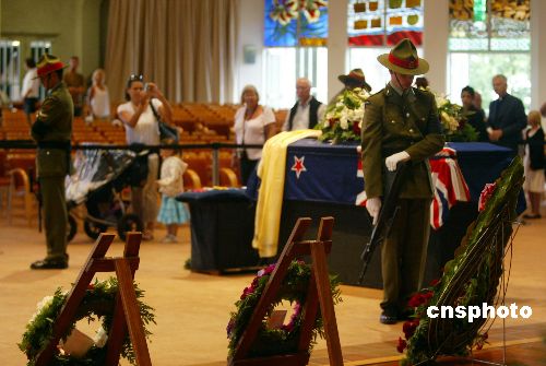 2008年1月21日,新西蘭奧克蘭市民冒雨前往位于市中心附近的Holy Trinity Cathedra,瞻仰希拉里爵士靈柩,以寄托哀思。新西蘭政府將于1月22日破格為埃德蒙·希拉里爵士舉行國葬。 1919年生于新西蘭的奧克蘭。他自幼喜歡登山和探險(xiǎn)活動(dòng),并在中學(xué)時(shí)開始了登山探險(xiǎn)的實(shí)踐。1953年5月29日,34歲的埃德蒙·希拉里和同伴丹增一起,由珠穆朗瑪峰尼泊爾一側(cè)即南側(cè)攀登,第一次站在了世界之巔。除了攀登珠峰以外,埃德蒙·希拉里還登上了喜馬拉雅山脈的所有11座山峰,這些山峰全部在海拔6000米以上。中新社發(fā) 崔 萌 攝