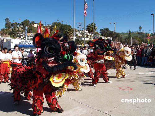 當(dāng)?shù)貢r間2月7日,大年初一清早,洛杉磯中國城越華會僑團舉行新年團拜,并以舞獅舞龍,燃放爆竹拉開新春第一天序幕,吸引上千來自越南的華人華僑共襄盛舉。中新社發(fā) 盧威 攝