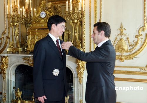 圖:薩科奇總統(tǒng)為中國駐法大使授勛