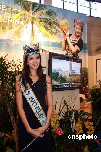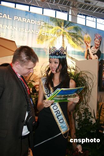 3月5日,2008柏林國際旅游展(ITB BERLIN)開幕,展覽為期5天將持續(xù)到9日。圖為第57屆世界小姐張梓琳作為“三亞形象大使”出現(xiàn)在展館。中新社發(fā) 關向東 攝