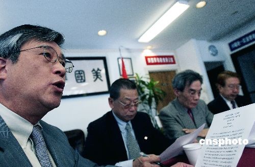當(dāng)?shù)貢r(shí)間3月9日,舊金山中國(guó)統(tǒng)一促進(jìn)會(huì)、北加州中國(guó)和平統(tǒng)一促進(jìn)會(huì)和海外興中會(huì)發(fā)表聯(lián)合聲明,堅(jiān)決反對(duì)臺(tái)灣當(dāng)局“入聯(lián)公投”。中新社發(fā) 陳鋼 攝