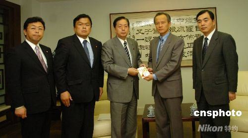 5月13日下午,日本執(zhí)政黨之一的公明黨黨首太田昭宏來(lái)到中國(guó)駐日使館向四川地震災(zāi)區(qū)捐贈(zèng)五十萬(wàn)日元善款。中國(guó)駐日大使崔天凱、公使孔鉉佑代表中國(guó)政府接受了公明黨的捐贈(zèng)。中新社發(fā) 朱沿華 攝