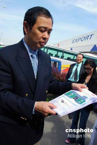 當地時間5月24日,法國首批救災帳篷啟運中國,支持汶川地震災區(qū)。首批大型帳篷共44頂,由中國駐法使館聯(lián)絡、法國賽峰集團贊助,中國國航免費承運。圖為中國駐法大使孔泉在巴黎戴高樂機場展示帳篷式樣。中新社發(fā) 吳衛(wèi)中 攝
