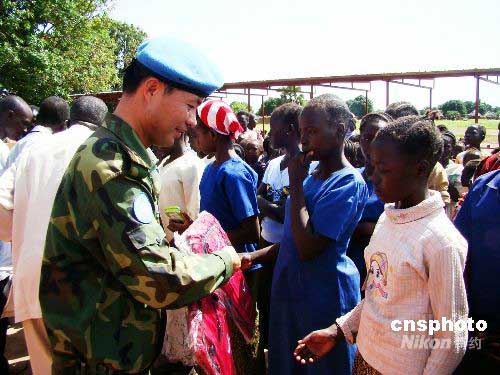 中國(guó)赴蘇丹維和工程兵向當(dāng)?shù)貎和I(xiàn)愛(ài)心