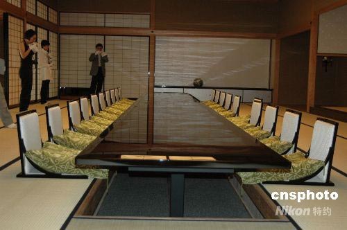 6月26日至27日將在京都迎賓館舉行“G8京都外長會議”,位于京都市中心上京區(qū)京都御所旁的京都迎賓館內部已裝飾一新。這次會議與5月底和6月中旬召開的“G8神戶環(huán)境部長會議”、“G8大阪財長會議”一起,屬于北海道洞爺湖G8峰會的準備會議。該賓館占地約兩萬平方米,是京都御苑的一部分。御苑曾經(jīng)是皇宮的所在地。中新社發(fā) 關妍 攝