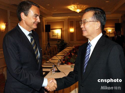 9月24日,溫家寶在紐約會見西班牙首相薩帕特羅。中新社發(fā) 李靜 攝