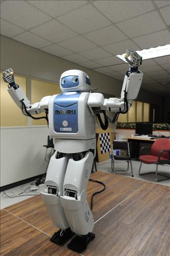 韓國(guó)科學(xué)技術(shù)研究院10月13日表示,機(jī)器人研究小組劉凡材博士開(kāi)發(fā)的機(jī)器人“MARU”,可同時(shí)轉(zhuǎn)動(dòng)上下肢,并可以像人一樣靈活行動(dòng),此外,還能隨著音樂(lè)節(jié)奏跳舞。人們還可以通過(guò)遠(yuǎn)程控制,讓它作出多種人體動(dòng)作。