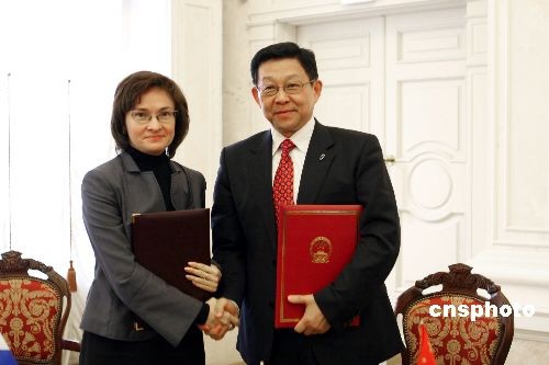 中國商務(wù)部長陳德銘與俄羅斯經(jīng)濟(jì)發(fā)展部長納比烏琳娜共同主持會議并簽署會議紀(jì)要。