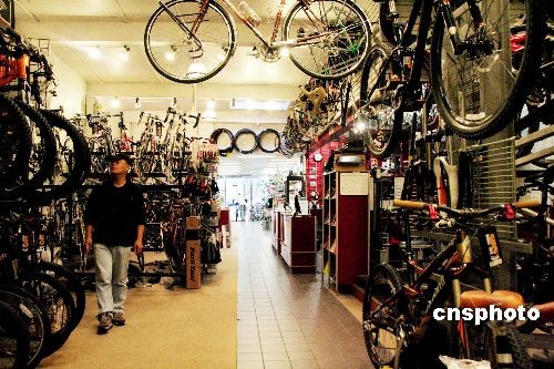 美國(guó)經(jīng)濟(jì)不景氣,不但催熱了二手商品店和打折網(wǎng)站,也火了自行車(chē)行。紐約中城三十四街一家自行車(chē)行里,小小兩百平米,擺了不下八十輛自行車(chē)。店員說(shuō),上個(gè)月天氣更暖和的時(shí)候,店里平均每天能賣(mài)二十輛自行車(chē),“這可是以前不多見(jiàn)的”。五百美元左右的中等價(jià)位車(chē)最受歡迎,買(mǎi)車(chē)人的人不少就在附近的寫(xiě)字樓里上班。中新社發(fā) 魏晞 攝