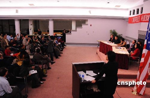 當(dāng)?shù)貢r(shí)間十月二十八日晚,兩黨競(jìng)選陣營代表在此間和美籍華人社區(qū)領(lǐng)袖舉行特別會(huì)議,就兩黨的競(jìng)選政策回答了華裔選民關(guān)注的問題。圖為民主共和兩黨競(jìng)選陣營代表和華裔選民交流。中新社發(fā) 邱江波 攝