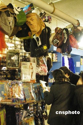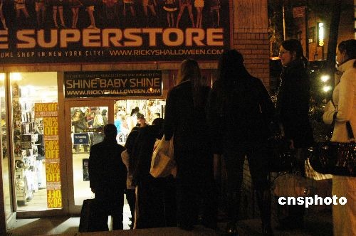 10月31日是西方傳統(tǒng)的“鬼節(jié)”萬圣節(jié)。30日晚,在曼哈頓三十八街與三大道交界,一家專售萬圣節(jié)服裝的商店外,紐約市民連夜排隊購置“鬼裝”,為萬圣節(jié)狂歡做準備。商家也不失時機的打出“五折”字樣,希望在節(jié)日前賺個盆滿缽滿。盡管美國經(jīng)濟不景氣,仍沒有影響人們過萬圣節(jié)的好心情。中新社發(fā) 魏晞 攝