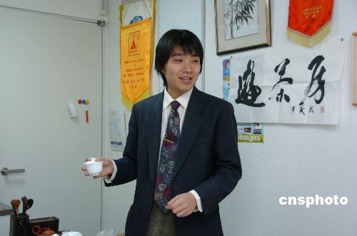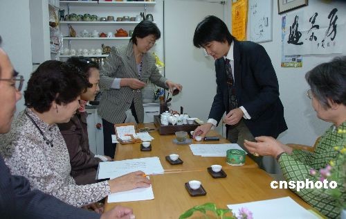 日本僑報社創(chuàng)辦的又一日中文化交流窗口--游茶房,在中國人聚居的池袋誕生。特別邀請人民中國雜志東京支局長、擁有中國茶藝師資格的于文主講中國茶文化。于文先生深入淺出的關(guān)于中國茶歷史的講解、如何品嘗中國茶的方法介紹等,受到日本參加者的好評。圖為11月4日于文在日本僑報社游茶房主辦的第三次中國茶文化講座演講。中新社發(fā) 段躍中 攝