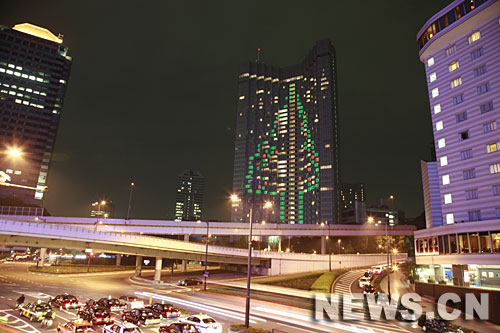 11月6日晚,日本首都東京一家酒店外墻用燈光組成一個高約100米的大型“圣誕樹”,以迎接即將到來的“圣誕節(jié)”。