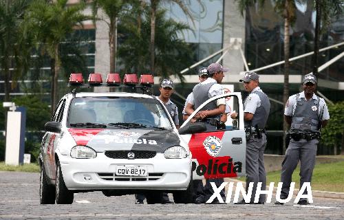 11月7日,在巴西圣保羅,幾名警察在20國集團(tuán)財政部長和中央銀行行長會議舉辦地點戒備。20國集團(tuán)財長和央行行長會議于7日至9日在圣保羅舉行。新華社記者張傳奇攝