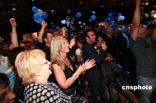 當?shù)貢r間11月8日,2008新西蘭大選最后以國家黨勝出而告終,國家黨黨魁John Key當選新西蘭下一屆總理。中新社發(fā) 李凌昊 攝