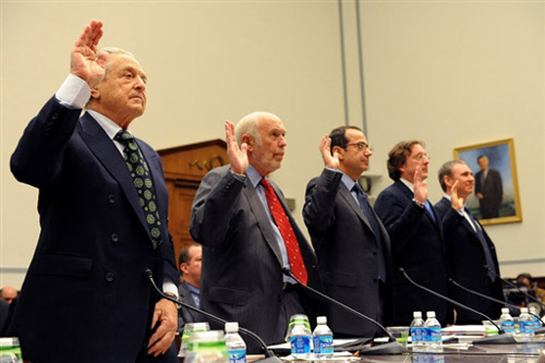 為弄清金融危機(jī)發(fā)生的原因,尋找“對(duì)癥下藥”的政策措施,美國國會(huì)在11月13日聆訊5名久負(fù)盛名的對(duì)沖基金經(jīng)理人,調(diào)查這5名經(jīng)理人在金融危機(jī)中所起的作用。按照國會(huì)的要求,這5名經(jīng)理人向美國會(huì)監(jiān)管和政府改革委員會(huì)作證。這5名經(jīng)理人去年收入均超過了10億美元,其中包括赫赫有名的喬治·索羅斯。