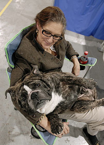 馴狗師卡倫·魯索和牛頭犬“蕎麥”在作最后休整。