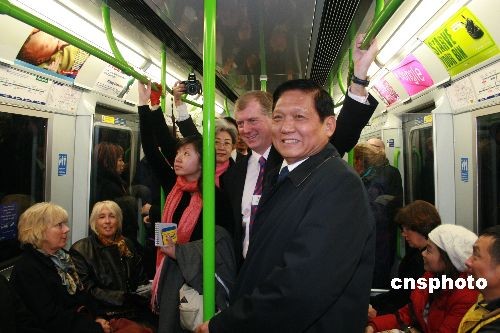 當地時間28日上午,中共中央政治局委員、北京市委書記、北京奧組委主席劉淇在倫敦地鐵公司參觀考察。中新社發(fā) 李鵬 攝