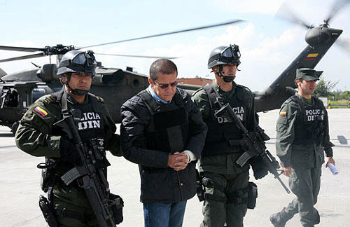12月12日,哥倫比亞司法警察押送大毒梟迭戈·蒙托亞走向美國緝毒署的直升機,將其引渡到美國。哥倫比亞總統(tǒng)烏里韋11日簽署行政決議,同意將美國聯(lián)邦調(diào)查局“十大通緝要犯”之一、哥倫比亞大毒梟迭戈·蒙托亞引渡到美國接受審判。