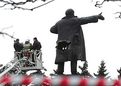 俄羅斯新聞社援引警方發(fā)言人報道:“凌晨4時30分(北京時間8時30分),身份不明者引爆雕像上某種爆炸裝置!卑l(fā)言人說,肇事者在銅像身上炸出一個大洞,事件中沒有人員傷亡。