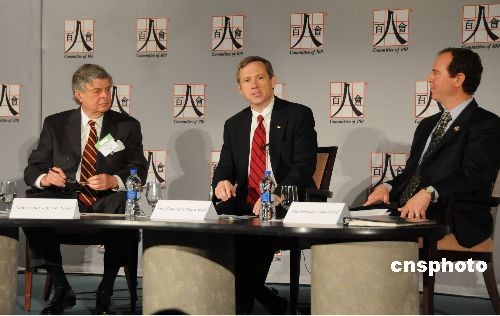 四月三十日,著名的美國華裔組織百人會(huì)第十八屆年會(huì)在華盛頓召開,為期三天的會(huì)議云集了中美兩國重量級人物,包括白宮內(nèi)閣秘書長盧沛寧,美國總統(tǒng)奧巴馬特別顧問、國家安全委員會(huì)首席中國問題顧問杰弗里·貝德,美國貿(mào)易代表柯克,世界銀行副行長、首席經(jīng)濟(jì)學(xué)家林毅夫等,他們將就有關(guān)中美關(guān)系、金融危機(jī)等眾多熱點(diǎn)問題進(jìn)行深入分析和廣泛研討。中新社發(fā) 吳慶才 攝