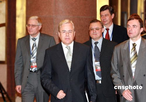 九月二十七日,朝核問題第六輪六方會(huì)談第二階段會(huì)議在北京釣魚臺(tái)國(guó)賓館開幕。圖為俄羅斯代表團(tuán)團(tuán)長(zhǎng)洛修科夫(左二)參加會(huì)議開幕。中新社發(fā) 廖文靜 攝
