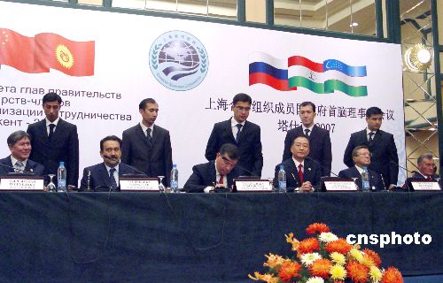 十一月二日,在烏茲別克斯坦首都塔什干舉行的上海合作組織總理第六次會(huì)議結(jié)束后,六國(guó)總理簽署了聯(lián)合公報(bào)等文件,并共同會(huì)見(jiàn)了記者。中新社發(fā) 孫宇挺 攝