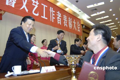 中共中央政治局委員、中央書(shū)記處書(shū)記、中宣部部長(zhǎng)劉云山出席會(huì)議并為榮獲“全國(guó)中青年德藝雙馨文藝工作者”榮譽(yù)稱號(hào)的藝術(shù)家頒獎(jiǎng)。