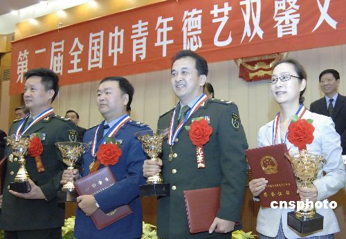 圖為獲獎(jiǎng)的部分藝術(shù)家(左至右)閻維文、高西西、黃宏、奚美娟。