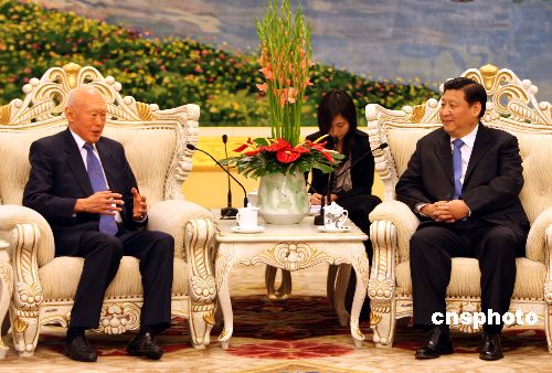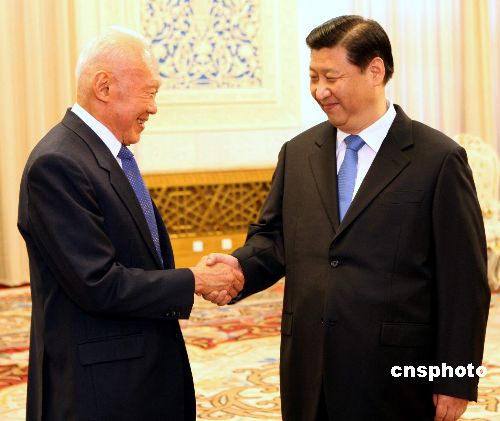 十一月十六日,中共中央政治局常委、書記處書記習(xí)近平在北京人民大會堂會見來訪的新加坡內(nèi)閣資政李光耀。中新社發(fā) 任海霞 攝