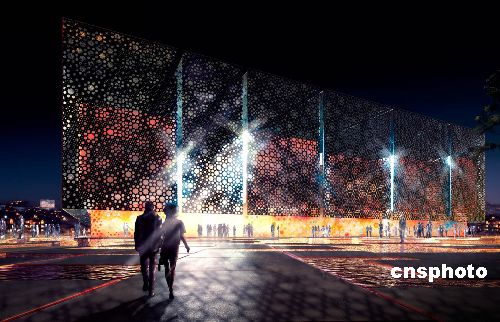 十一月十六日,阿拉伯聯(lián)合酋長國在上海與中國方面正式簽署參展2010年上海世博會合同,并公布阿聯(lián)酋國家館設(shè)計(jì)方案。阿聯(lián)酋是首個與中方簽約參展上海世博會的中東國家。圖為阿聯(lián)酋國家館的璀璨夜景效果圖。中新社發(fā) 世博局 攝