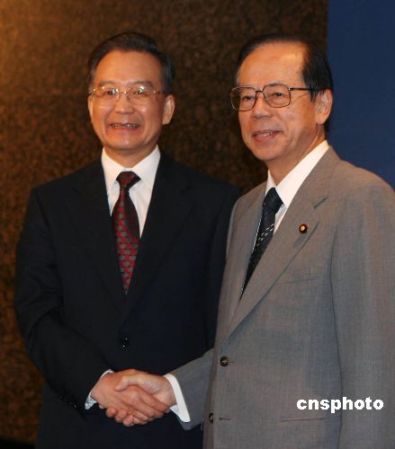 中國國務院總理溫家寶十一月二十日在新加坡會見日本首相福田康夫,這是兩位領導人的首次會晤。中新社發(fā) 周群 攝