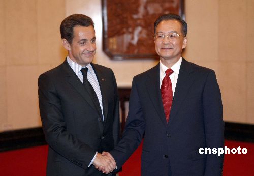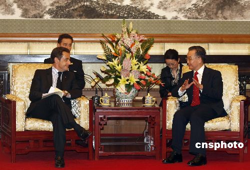 十一月二十六日,中國(guó)國(guó)務(wù)院總理溫家寶在北京釣魚臺(tái)國(guó)賓館會(huì)見來訪的法國(guó)總統(tǒng)薩科奇。中新社發(fā) 盛佳鵬 攝