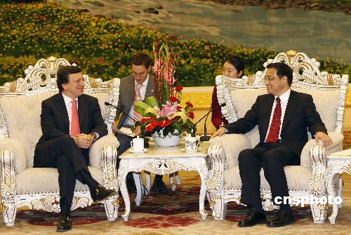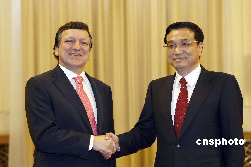 十一月二十八日,中共中央政治局常委李克強(qiáng)在北京人民大會堂會見歐盟委員會主席巴羅佐。中新社發(fā) 盛佳鵬 攝