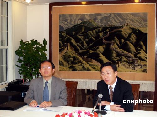 11月28日,中國(guó)駐洛杉磯總事館實(shí)行新聞發(fā)言人制度,將每月舉行一次新聞發(fā)布會(huì),廣邀美國(guó)主流媒體及華文媒體記者參加。在首次新聞發(fā)布會(huì)上,副總領(lǐng)事許朝友和新聞發(fā)言人陳世杰,就保護(hù)中國(guó)公民、北京奧運(yùn)海外志愿者報(bào)名手續(xù)等問題回答了記者的提問。中新社發(fā) 盧威 攝