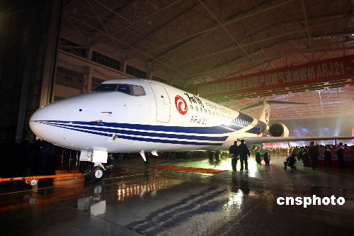 十二月二十一日,由中國航空工業(yè)第一集團公司(中國一航)自行研制生產(chǎn)的中國首架自主知識產(chǎn)權(quán)噴氣支線客機ARJ21-700飛機,在上海飛機制造廠舉行盛大的總裝下線儀式。此舉表明,中國在民用飛機科研和制造領(lǐng)域取得突破性進展,中國自主研制的先進噴氣支線客機已成為世界民用客機大家庭的新成員。這款開創(chuàng)中國民用飛機發(fā)展新紀(jì)元的支線客機,其中文名稱被確定為頗富中國特色的“翔鳳”。 中新社發(fā) 文音 攝