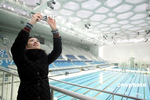 1月23日,北京市政協(xié)港澳委員及港澳臺僑工作顧問等一行參觀國家游泳中心——“水立方”。圖為劉浩眉委員在“水立方”內(nèi)拍照。 中新社發(fā) 杜燕 攝