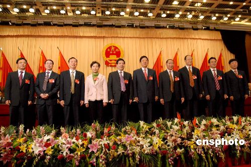 一月二十四日,云南省十一屆人大一次會議選舉產(chǎn)生新一屆云南省人民政府省長、副省長。圖為云南省委書記白恩培(右五)和當(dāng)選云南省新一屆政府省長、副省長合影。從右至左為顧朝曦、高峰、孔垂柱、羅正富、白恩培、秦光榮、李江、劉平、曹建方、和段琪。中新社發(fā) 石雨 攝