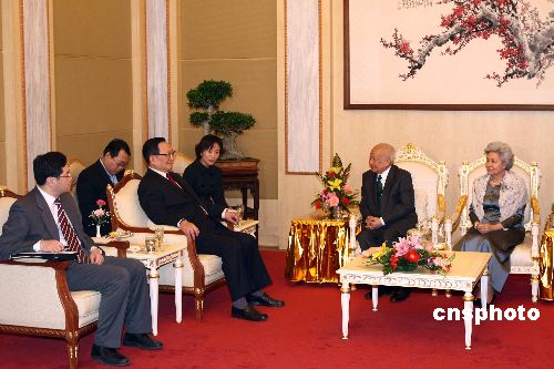 2月4日,受中國國家主席胡錦濤和國務(wù)院總理溫家寶的委托,國務(wù)委員唐家璇專程看望在北京的柬埔寨太皇諾羅敦·西哈努克和太后諾羅敦·莫尼列·西哈努克。中新社發(fā) 盛佳鵬 攝