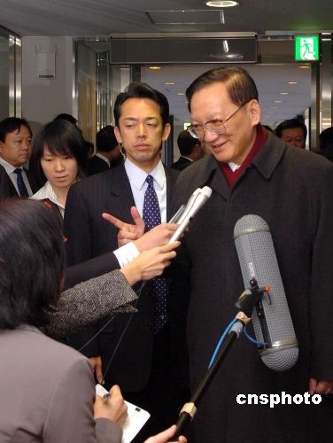 2月20日下午3點(diǎn)35分,中國國務(wù)委員唐家璇抵達(dá)東京成田國際機(jī)場,開始對日本進(jìn)行友好訪問。圖為唐家璇國務(wù)委員走下飛機(jī)后,接受中日媒體的采訪。中新社發(fā) 滕劍峰 攝