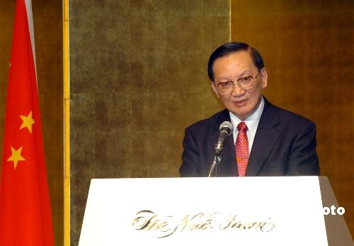 圖:唐家璇出席駐日使館招待會發(fā)表演講