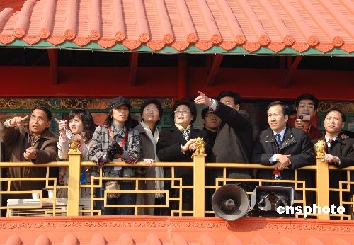 2月21日,中國國務(wù)院僑辦主任李海峰(左五)和前來參加“海峽西岸鬧元宵,全球華人盼團(tuán)圓”活動的五百多位臺港澳僑胞一起乘坐“成功”六號仿古游船,觀賞金門、環(huán)鼓浪嶼風(fēng)光。中新社發(fā) 鄭祚聲 攝