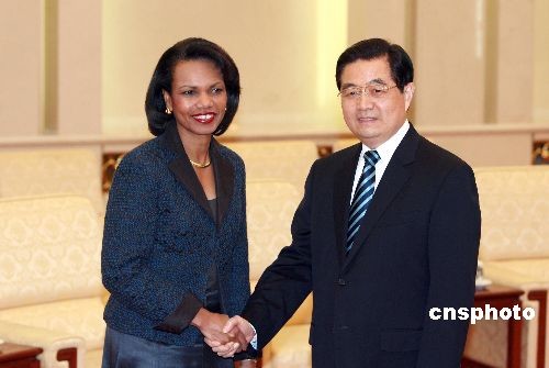 圖:胡錦濤會(huì)見美國(guó)國(guó)務(wù)卿賴斯
