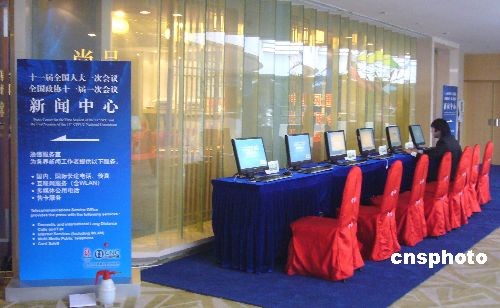 2月26日,設(shè)在北京梅地亞中心的兩會新聞中心已布置就緒,當(dāng)日正式啟用,同時開始接待中外各媒體記者辦理有關(guān)事宜。兩會期間,這里將向國內(nèi)外傳送和發(fā)布最新的新聞圖片及信息。中新社發(fā) 玉龍 攝